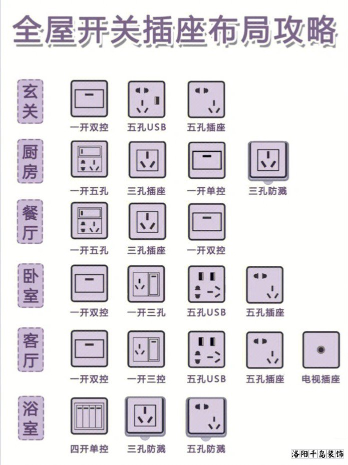 新房裝修開關(guān)插座怎么留?這已經(jīng)是一個(gè)被無數(shù)人都說過的話題,對于常規(guī)的開關(guān)插座布局方法,詳細(xì)大家都已經(jīng)很清楚了,今天洛陽千島裝飾的小編就著重給大家講一下,開關(guān)插座預(yù)留最容易忽略的10個(gè)關(guān)鍵點(diǎn),遺漏這10個(gè)開關(guān)插座,后期沒法補(bǔ)救,大大影響您后期入住的舒適度和實(shí)用性。